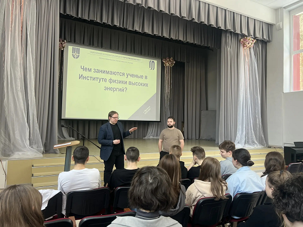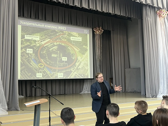 В рамках образовательного трека молодые сотрудники НИЦ «Курчатовский институт» – ИФВЭ посетили МБОУ «Лицей № 1» города Протвино. Учёные рассказали учащимся о задачах, которые решаются в институте, — как фундаментальных научных исследованиях, так и в работе специалистов, обеспечивающих функционирование ускорительного комплекса.