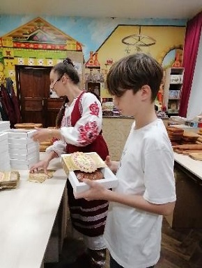 В процесс все включились с большим удовольствием и энтузиазмом, причём не только дети, но и взрослые. У каждого получился свой индивидуальный пряник – прямоугольной, круглой, овальной формы или в виде сердечка, со своим рисунком и надписью. |