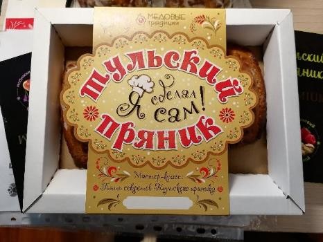 Подошло время и группы из Протвино, и ведущие в красивых русских нарядах, облачив всех в фартуки, сначала рассказали историю и секреты Тульского пряника, а затем пригласили за длинные столы, где уже лежали печатные формы и заготовки из пряничного теста. Все Тульские пряники изготавливаются по старинным рецептам только вручную, с помощью печатных деревянных форм с разным рисунком. Главный компонент пряничного теста - мед, который является отличным натуральным консервантом, поэтому храниться пряники могут бесконечно долго. |