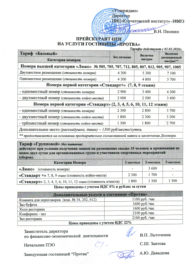в гостинице “Протва” НИЦ «Курчатовский институт» – ИФВЭ